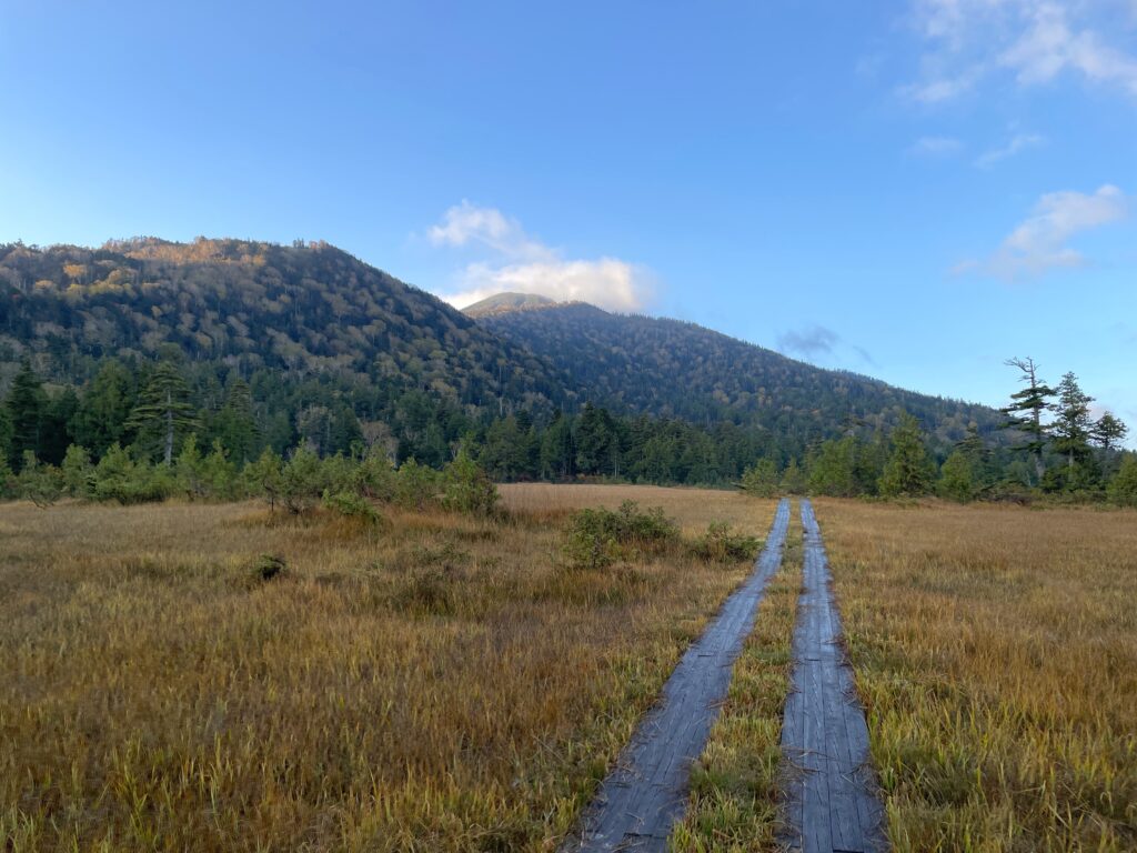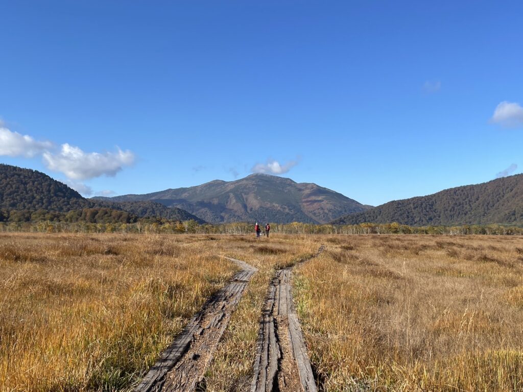 尾瀬の紅葉は9月下旬の草紅葉に始まり10月中旬には木々が黄金色に輝き始めます。人もまばらになり澄んだ空気と高い空。静けさが心地よい森林歩きに始まり、定番の尾瀬沼と尾瀬ヶ原を歩きます。